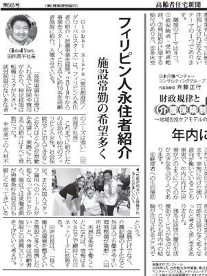 介護以外の分野でも派遣領域を広げたいと思っています。フィリピン人は食品製造、ホテルのベッドメイキング、空港清掃、家政婦、工場などで活躍している方が多いです。介護以外の領域でも明るくて大家族の中で子供の時から祖父母の面倒をみてきた面倒見がよく家事に強いフィリピン人をお求めの雇用主は多いかと思います。